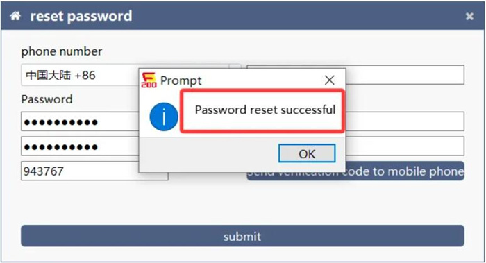 Once reset, log in again to access the software