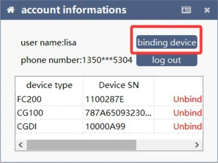 Starting from version 1.2.9.4, you are required to log in and bind your CG FC200 ECU Programmer to access the software.