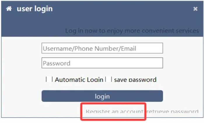 Click “Register” button on the login screen.