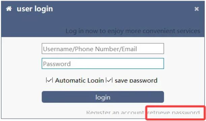 Click on “Retrieve Password” on the login screen.